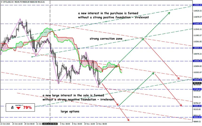 Sell: 97,000 (on a pullback after retesting the 100,000 level) ; target 95,500-95,000; StopLoss 98,000