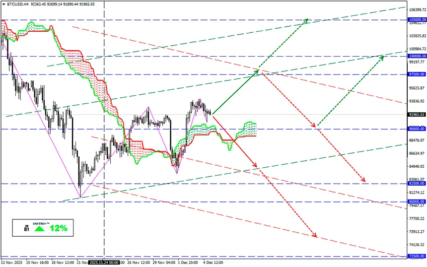 Bitcoin is consolidating in the $91 000–94 000 range ahead of options expiration. Bullish momentum has weakened significantly but has not been fully invalidated. For an upward breakout, the market needs a strong trigger — which may come from the expiration of about $3.4 billion in options. The PUT/CALL ratio stands at 0.91 — almost neutral, and the actual size of contracts being closed is difficult to assess. Therefore, the move may be sharp in either direction.