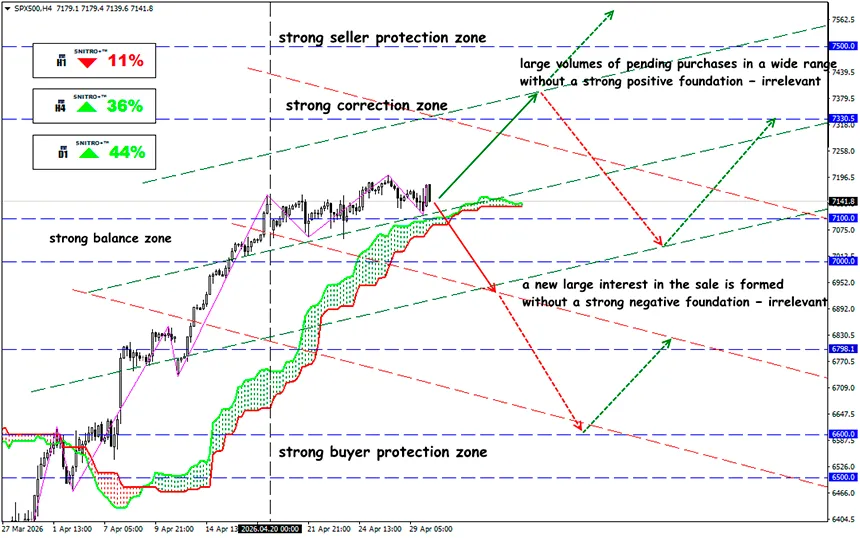 Sin embargo, las acciones operan bajo un paradigma diferente. La lógica es simple: si la inflación persiste, las empresas capaces de trasladar rápidamente el aumento de costos a los consumidores se beneficiarán. Este parece ser el escenario actualmente descontado en las valoraciones del S&P 500 — y no un final rápido del conflicto militar.
