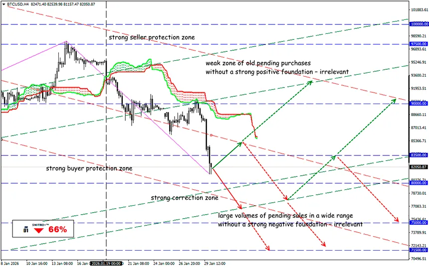 Las señales técnicas resultaron secundarias: el principal catalizador fueron los riesgos políticos relacionados con las acciones del presidente de Estados Unidos — amenazas de nuevos aranceles, escalada en Oriente Medio, la introducción de un estado de emergencia respecto a Cuba y las expectativas de un cambio en la presidencia de la Fed. Una especie de “efecto dominó” con sabor a Trump.