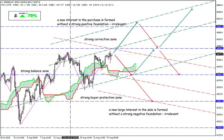 Buy: 6,500(6,450 дейін түзетуден кейін қайта оралу кезінде); нысана 6,600-6,650; StopLoss 6,430