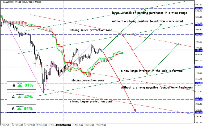 Сату: 4,500.00 (күшті теріс фундаменталды фон жағдайында); мақсат 4,250-4,000; StopLoss 4,600.00