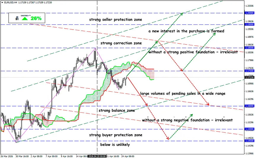 Продажа: 1.1680 (на уверенном пробое выше 1.1750); цель 1.1500; StopLoss 1.1750