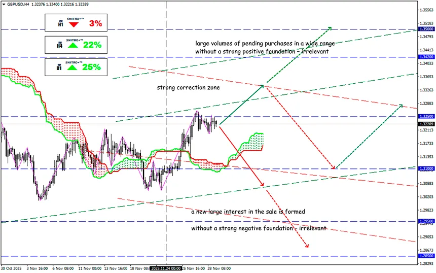 Фунт, вероятно, останется в верхней части текущих диапазонов против основных валют, с мягким потенциалом роста. Наиболее вероятная зона по GBP/USD — 1.33–1.37, с потенциальной коррекцией в область 1.3550–1.3600 при условии, если не возникнет новый политический шок с отношениями Ривз/Стармер и глобальный риск-аппетит сохранится.